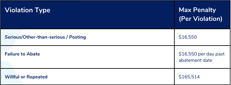 - Occupational Safety and Health Administration. (2025, January 7). 2025 annual adjustments to OSHA civil penalties. https://www.osha.gov/memos/2025-01-07/2025-annual-adjustments-osha-civil-penalties