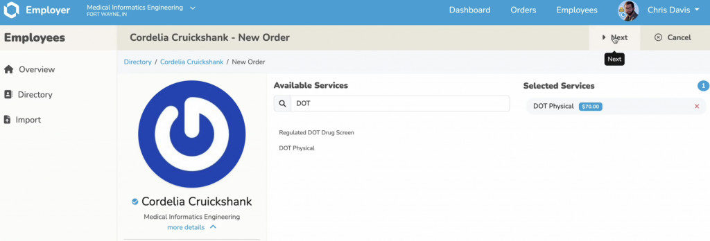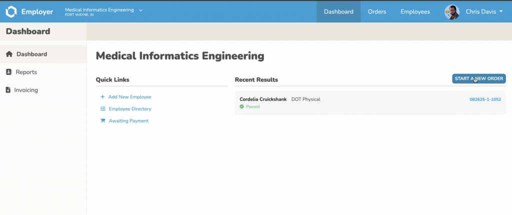 - Select Start New Order (choose exams, tests, or clearances)