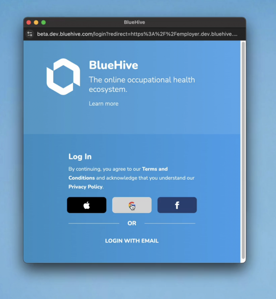 - Log into BlueHive