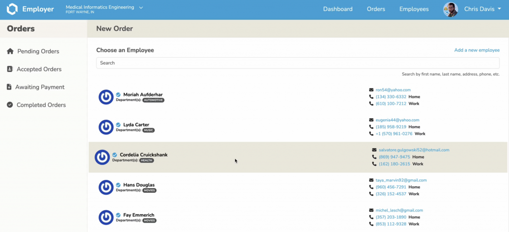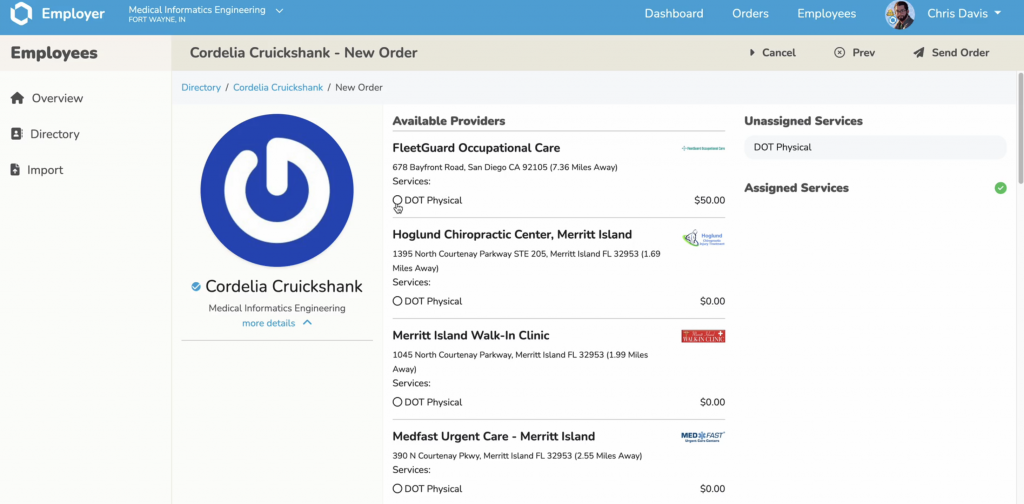 - Select the Clinic Closest to the Employee that Offers the Service